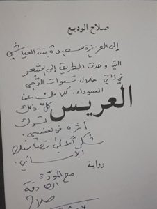 كنت أحفظ مقاطع من العريس لما تحمله من عمق انساني وإحساس قوي، في لقائي مع صلاح ولأعبر له ان ما يكتبه يصل الى الناس ،وجدت نفسي أردد بعضاً من الصورة القوية في العريس، وأستعيد أبياتاً من شعره: